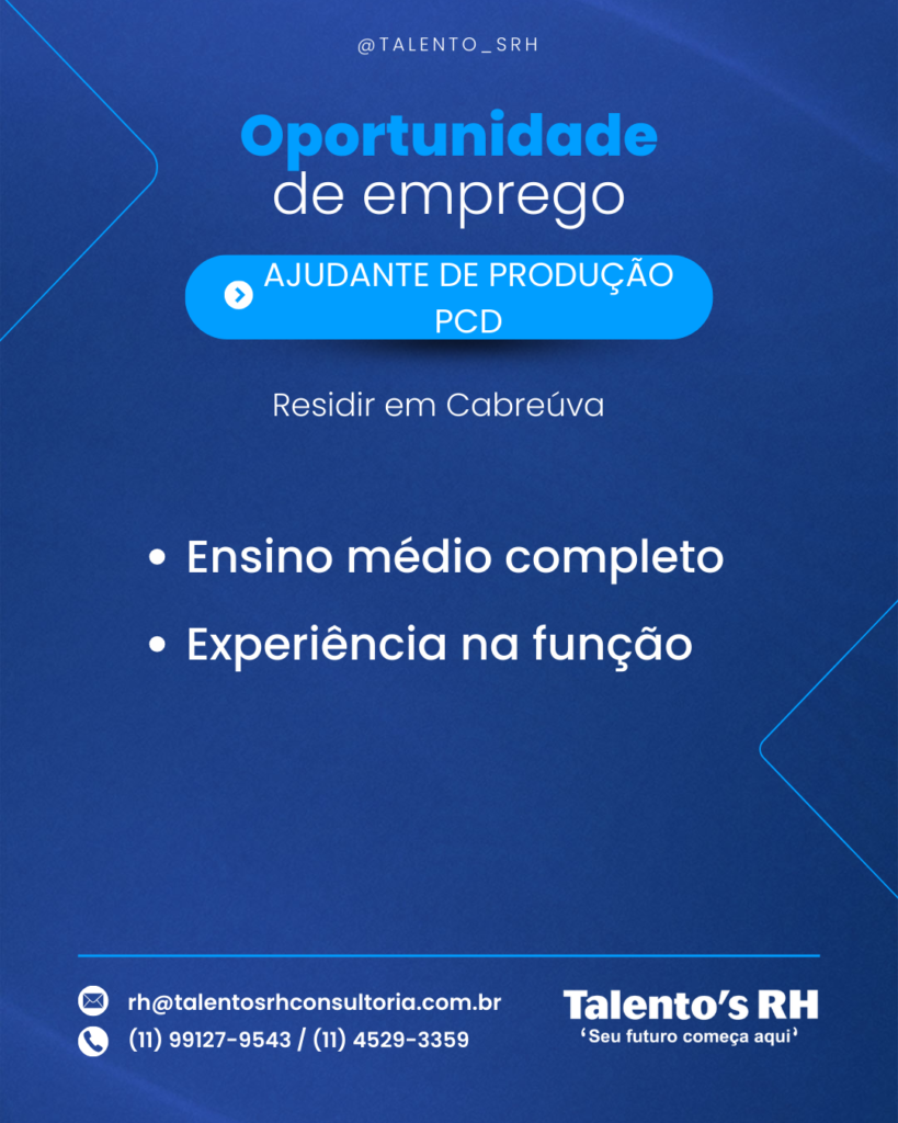 AJUDANTE DE PRODUÇÃO – PCD Em Vagas CANDIDATE-SE ABAIXO Primeiro Nome *Nome do meioE-mail *Telefone *ADICIONE O SEU CURRÍCULO AQUI! *Selecione ArquivoNenhum arquivo selecionado aindaDeletar arquivo enviadoPARA QUAL VAGA DESEJA SE CANDIDATAR? *0 / 180Enviar mensagem