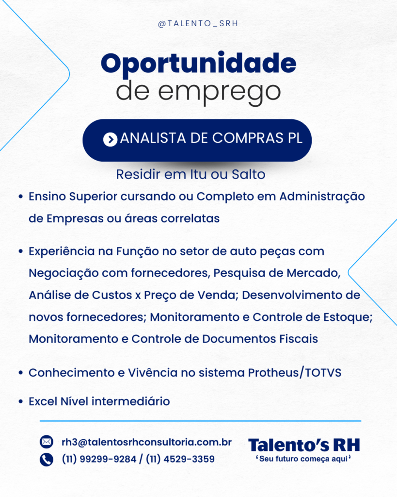 ANALISTA DE COMPRAS PL Em Vagas CANDIDATE-SE ABAIXO Primeiro Nome *Nome do meioE-mail *Telefone *ADICIONE O SEU CURRÍCULO AQUI! *Selecione ArquivoNenhum arquivo selecionado aindaDeletar arquivo enviadoPARA QUAL VAGA DESEJA SE CANDIDATAR? *0 / 180Enviar mensagem