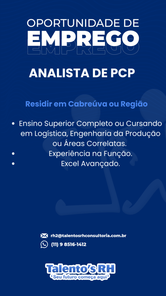 ANALISTA DE PCP Em Vagas CANDIDATE-SE ABAIXO Primeiro Nome *Nome do meioE-mail *Telefone *ADICIONE O SEU CURRÍCULO AQUI! *Selecione ArquivoNenhum arquivo selecionado aindaDeletar arquivo enviadoPARA QUAL VAGA DESEJA SE CANDIDATAR? *0 / 180Enviar mensagem