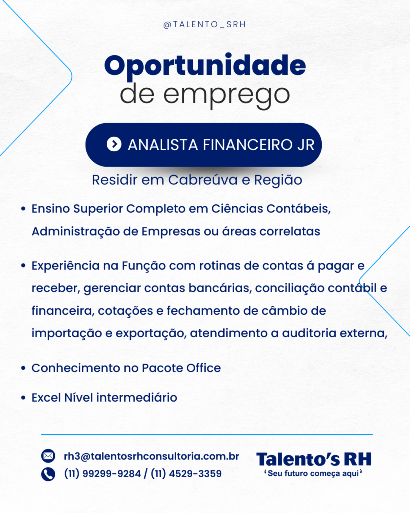 ANALISTA FINANCEIRO JR Em Vagas CANDIDATE-SE ABAIXO Primeiro Nome *Nome do meioE-mail *Telefone *ADICIONE O SEU CURRÍCULO AQUI! *Selecione ArquivoNenhum arquivo selecionado aindaDeletar arquivo enviadoPARA QUAL VAGA DESEJA SE CANDIDATAR? *0 / 180Enviar mensagem