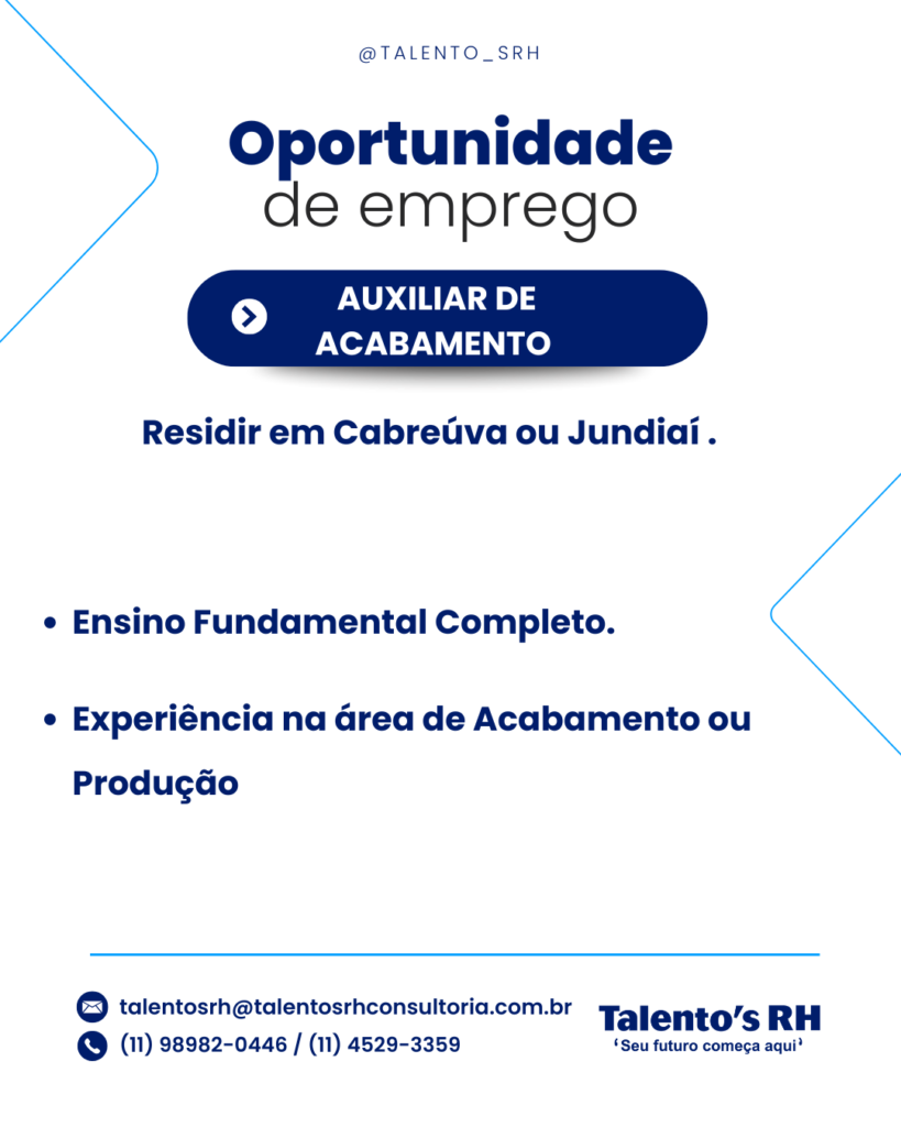 AUXILIAR DE ACABAMENTO- BRASMOLDE Em Vagas CANDIDATE-SE ABAIXO Primeiro Nome *Nome do meioE-mail *Telefone *ADICIONE O SEU CURRÍCULO AQUI! *Selecione ArquivoNenhum arquivo selecionado aindaDeletar arquivo enviadoPARA QUAL VAGA DESEJA SE CANDIDATAR? *0 / 180Enviar mensagem