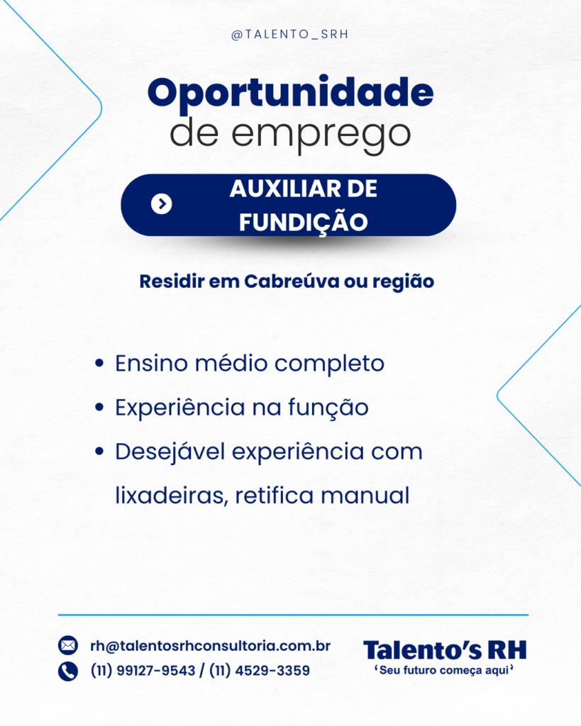 AUXILIAR DE FUNDIÇÃO Em Vagas CANDIDATE-SE ABAIXO Primeiro Nome *Nome do meioE-mail *Telefone *ADICIONE O SEU CURRÍCULO AQUI! *Selecione ArquivoNenhum arquivo selecionado aindaDeletar arquivo enviadoPARA QUAL VAGA DESEJA SE CANDIDATAR? *0 / 180Enviar mensagem