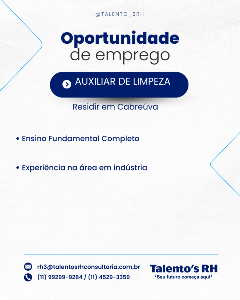 AUXILIAR DE LIMPEZA Em Vagas CANDIDATE-SE ABAIXO Primeiro Nome *Nome do meioE-mail *Telefone *ADICIONE O SEU CURRÍCULO AQUI! *Selecione ArquivoNenhum arquivo selecionado aindaDeletar arquivo enviadoPARA QUAL VAGA DESEJA SE CANDIDATAR? *0 / 180Enviar mensagem
