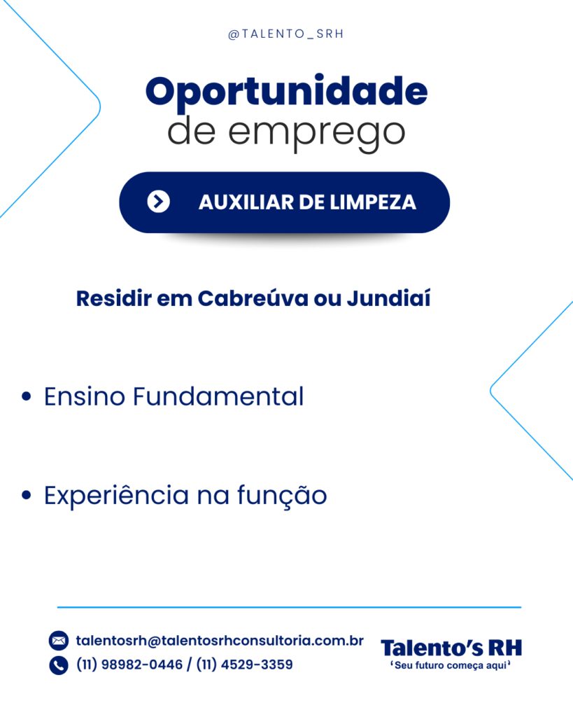 Auxiliar de Limpeza Em Vagas CANDIDATE-SE ABAIXO Primeiro Nome *Nome do meioE-mail *Telefone *ADICIONE O SEU CURRÍCULO AQUI! *Selecione ArquivoNenhum arquivo selecionado aindaDeletar arquivo enviadoPARA QUAL VAGA DESEJA SE CANDIDATAR? *0 / 180Enviar mensagem