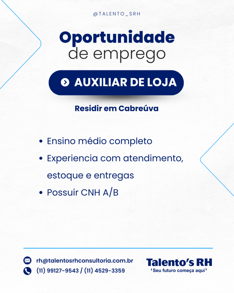 SUA OPORTUNIDADE DE EMPREGO ESTÁ AQUI!