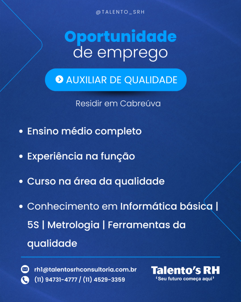 AUXILIAR DE QUALIDADE Em Vagas CANDIDATE-SE ABAIXO Primeiro Nome *Nome do meioE-mail *Telefone *ADICIONE O SEU CURRÍCULO AQUI! *Selecione ArquivoNenhum arquivo selecionado aindaDeletar arquivo enviadoPARA QUAL VAGA DESEJA SE CANDIDATAR? *0 / 180Enviar mensagem