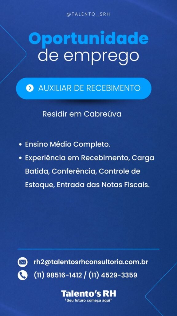 AUXILIAR DE RECEBIMENTO Em Vagas CANDIDATE-SE ABAIXO Primeiro Nome *Nome do meioE-mail *Telefone *ADICIONE O SEU CURRÍCULO AQUI! *Selecione ArquivoNenhum arquivo selecionado aindaDeletar arquivo enviadoPARA QUAL VAGA DESEJA SE CANDIDATAR? *0 / 180Enviar mensagem