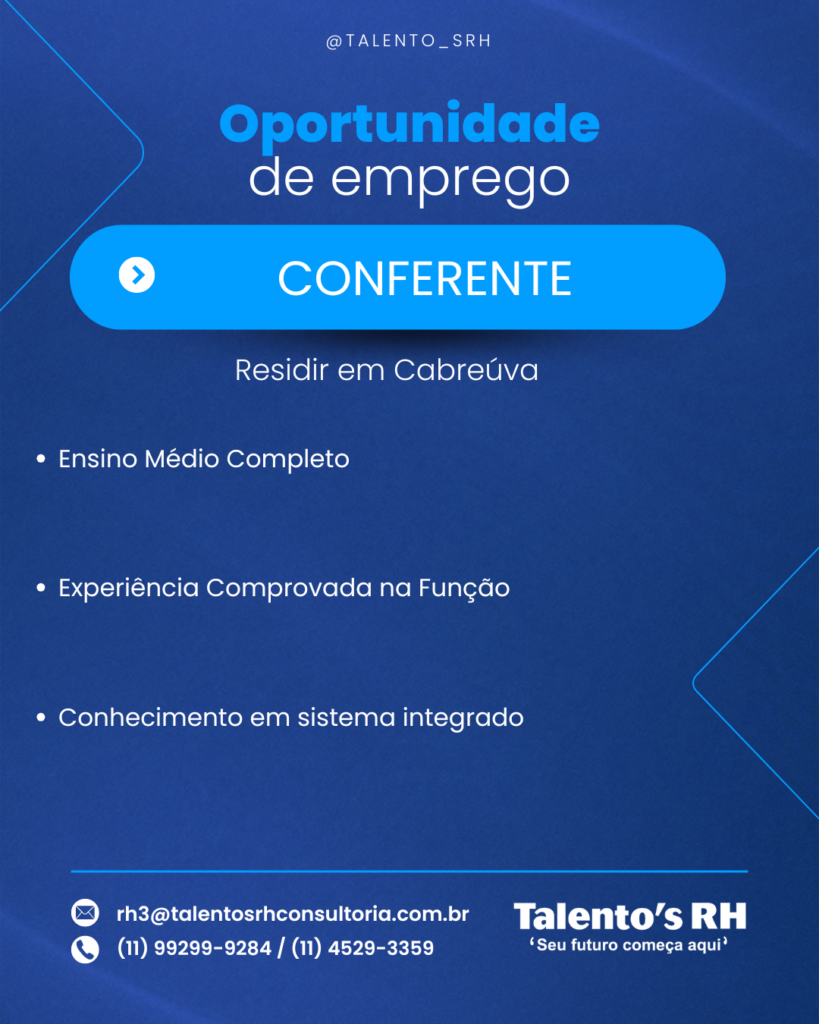 CONFERENTE Em Vagas CANDIDATE-SE ABAIXO Primeiro Nome *Nome do meioE-mail *Telefone *ADICIONE O SEU CURRÍCULO AQUI! *Selecione ArquivoNenhum arquivo selecionado aindaDeletar arquivo enviadoPARA QUAL VAGA DESEJA SE CANDIDATAR? *0 / 180Enviar mensagem