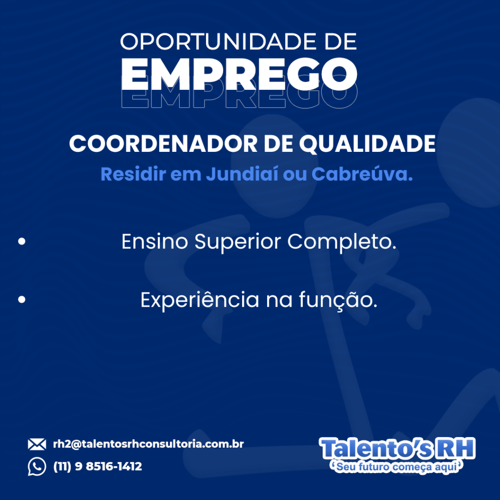 COORDENADOR DE QUALIDADE Em Vagas CANDIDATE-SE ABAIXO Primeiro Nome *Nome do meioE-mail *Telefone *ADICIONE O SEU CURRÍCULO AQUI! *Selecione ArquivoNenhum arquivo selecionado aindaDeletar arquivo enviadoPARA QUAL VAGA DESEJA SE CANDIDATAR? *0 / 180Enviar mensagem