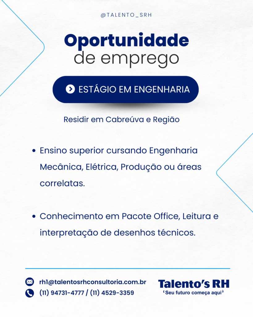 ESTÁGIO EM ENGENHARIA Em Vagas CANDIDATE-SE ABAIXO Primeiro Nome *Nome do meioE-mail *Telefone *ADICIONE O SEU CURRÍCULO AQUI! *Selecione ArquivoNenhum arquivo selecionado aindaDeletar arquivo enviadoPARA QUAL VAGA DESEJA SE CANDIDATAR? *0 / 180Enviar mensagem