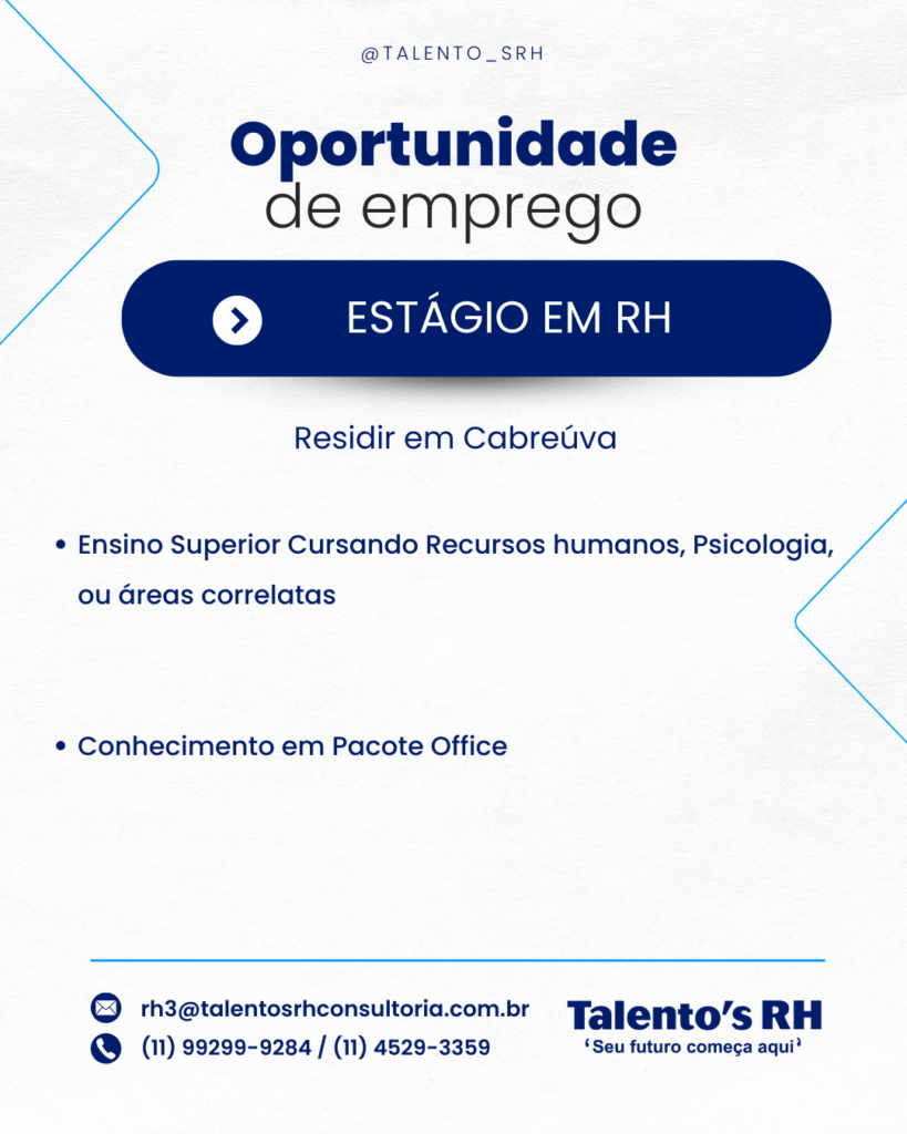 ESTÁGIO EM RH Em Vagas CANDIDATE-SE ABAIXO Primeiro Nome *Nome do meioE-mail *Telefone *ADICIONE O SEU CURRÍCULO AQUI! *Selecione ArquivoNenhum arquivo selecionado aindaDeletar arquivo enviadoPARA QUAL VAGA DESEJA SE CANDIDATAR? *0 / 180Enviar mensagem