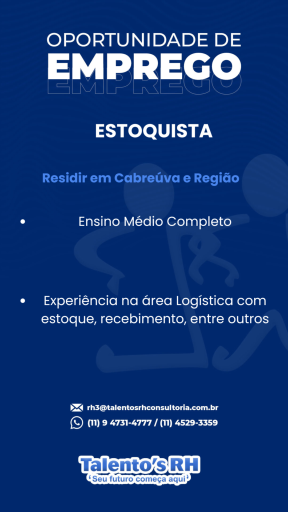 ESTOQUISTA Em Vagas CANDIDATE-SE ABAIXO Primeiro Nome *Nome do meioE-mail *Telefone *ADICIONE O SEU CURRÍCULO AQUI! *Selecione ArquivoNenhum arquivo selecionado aindaDeletar arquivo enviadoPARA QUAL VAGA DESEJA SE CANDIDATAR? *0 / 180Enviar mensagem