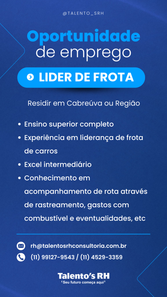 LIDER DE FROTA Em Vagas CANDIDATE-SE ABAIXO Primeiro Nome *Nome do meioE-mail *Telefone *ADICIONE O SEU CURRÍCULO AQUI! *Selecione ArquivoNenhum arquivo selecionado aindaDeletar arquivo enviadoPARA QUAL VAGA DESEJA SE CANDIDATAR? *0 / 180Enviar mensagem