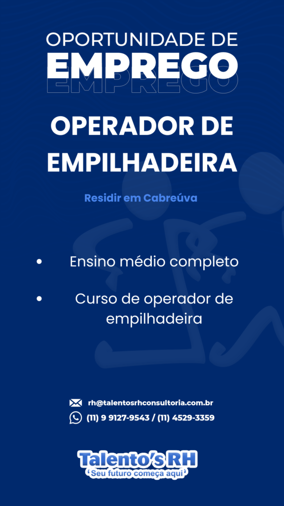 OPERADOR DE EMPILHADEIRA Em Vagas CANDIDATE-SE ABAIXO Primeiro Nome *Nome do meioE-mail *Telefone *ADICIONE O SEU CURRÍCULO AQUI! *Selecione ArquivoNenhum arquivo selecionado aindaDeletar arquivo enviadoPARA QUAL VAGA DESEJA SE CANDIDATAR? *0 / 180Enviar mensagem