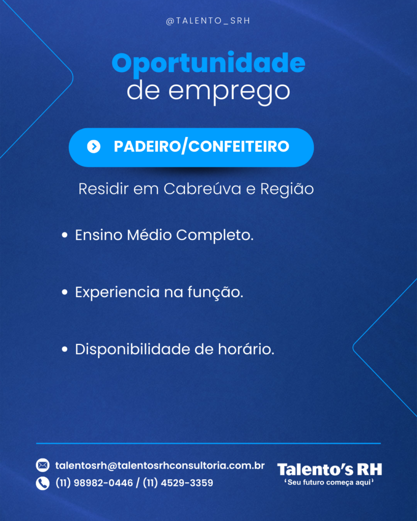 PADEIRO / CONFETEIRO Em Vagas CANDIDATE-SE ABAIXO Primeiro Nome *Nome do meioE-mail *Telefone *ADICIONE O SEU CURRÍCULO AQUI! *Selecione ArquivoNenhum arquivo selecionado aindaDeletar arquivo enviadoPARA QUAL VAGA DESEJA SE CANDIDATAR? *0 / 180Enviar mensagem