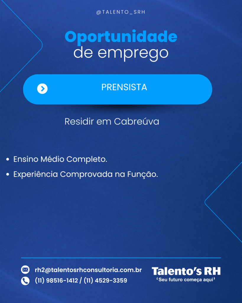 SUA OPORTUNIDADE DE EMPREGO ESTÁ AQUI!