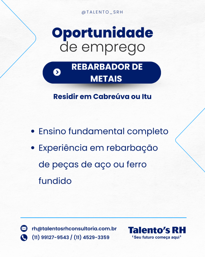 REBARBADOR DE METAIS Em Vagas CANDIDATE-SE ABAIXO Primeiro Nome *Nome do meioE-mail *Telefone *ADICIONE O SEU CURRÍCULO AQUI! *Selecione ArquivoNenhum arquivo selecionado aindaDeletar arquivo enviadoPARA QUAL VAGA DESEJA SE CANDIDATAR? *0 / 180Enviar mensagem