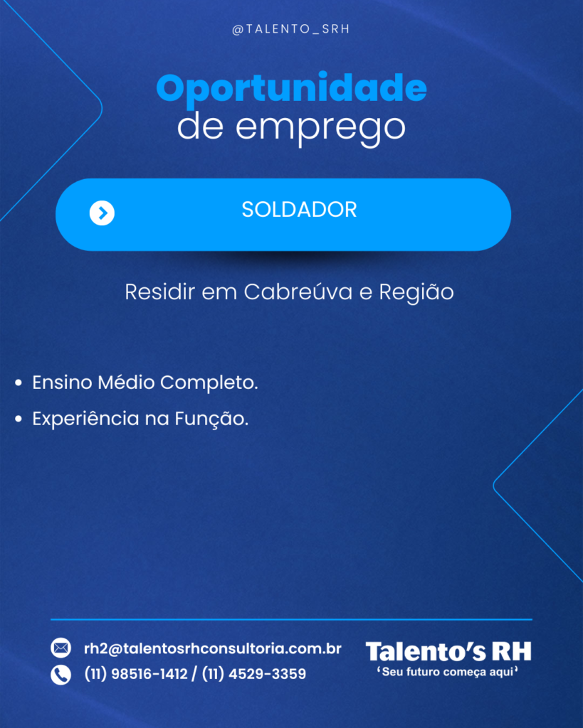 SOLDADOR Em Vagas CANDIDATE-SE ABAIXO Primeiro Nome *Nome do meioE-mail *Telefone *ADICIONE O SEU CURRÍCULO AQUI! *Selecione ArquivoNenhum arquivo selecionado aindaDeletar arquivo enviadoPARA QUAL VAGA DESEJA SE CANDIDATAR? *0 / 180Enviar mensagem