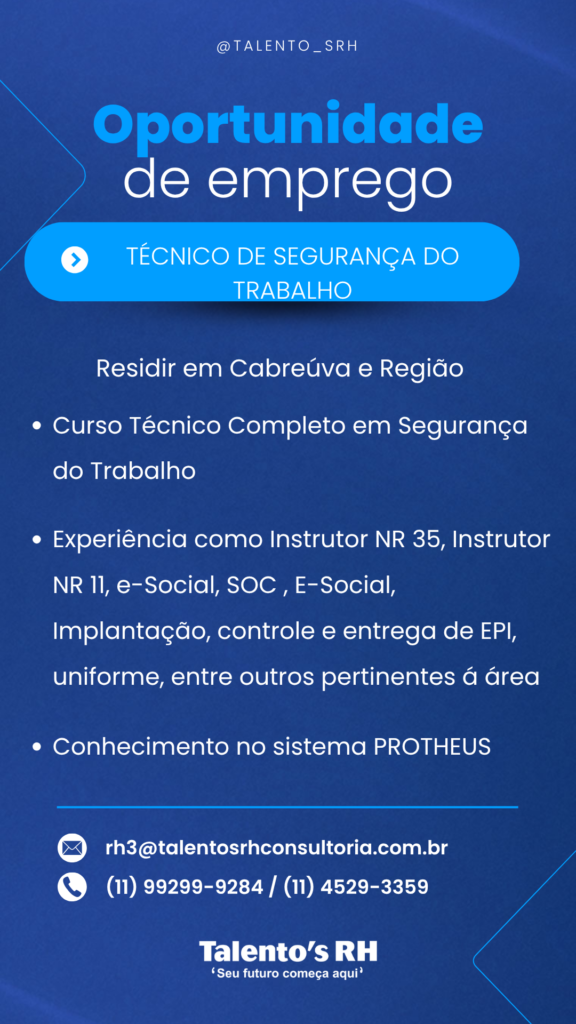 TÉCNICO DE SEGURANÇA DO TRABALHO Em Vagas CANDIDATE-SE ABAIXO Primeiro Nome *Nome do meioE-mail *Telefone *ADICIONE O SEU CURRÍCULO AQUI! *Selecione ArquivoNenhum arquivo selecionado aindaDeletar arquivo enviadoPARA QUAL VAGA DESEJA SE CANDIDATAR? *0 / 180Enviar mensagem